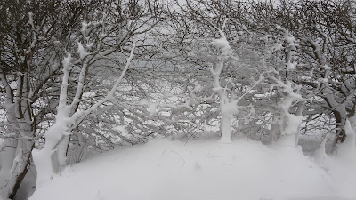 The drifts were getting quite deep although general ground cover was no more than a 30cm. In some places we had to struggle through 1.5m of snow on the trail. Snow shoes would have been very useful.